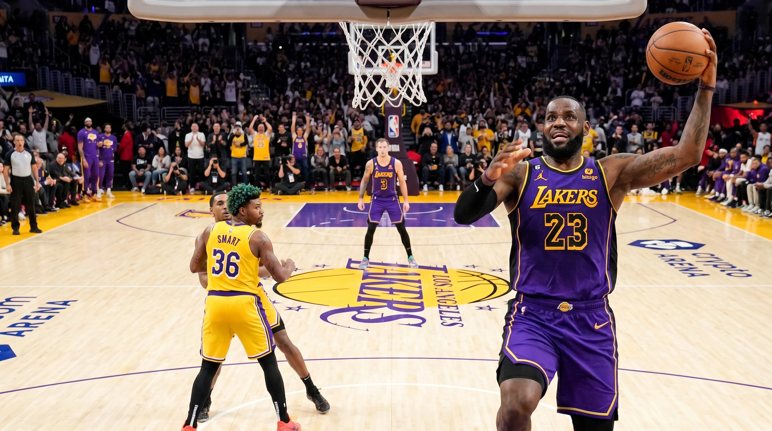 The defining moment of Game 2 arrived in the closing minute. With the Lakers clinging to a precarious lead, James drove to the basket and unleashed a soaring two-handed dunk, extending the advantage to 99-92 with just 55.3 seconds remaining. It was a play that sent the Crypto.com Arena crowd into a frenzy and effectively sealed the victory for Los Angeles.